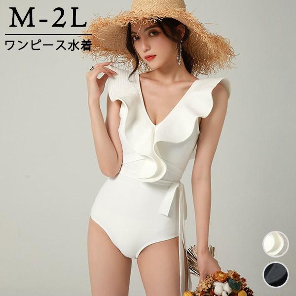 ワンピース水着 フリルショルダー フリル 体型カバー レディース 水着 ガール 可愛い 痩せ見え リゾート 温泉 ビーチ プール 海 水泳 セクシー オトナ女子 かわいい おしゃれ 韓国風 黒 ブラック
