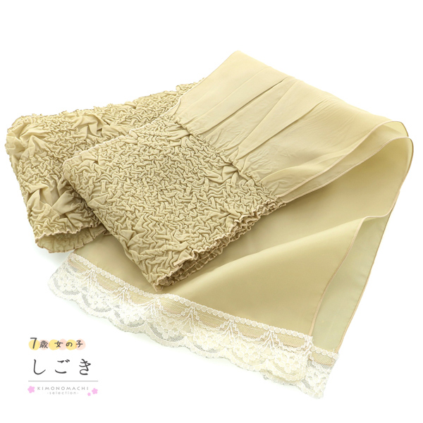 七五三 女の子 しごき 単品「絞りプリーツ ベージュ」日本製 7歳 女児 七五三小物 志古貴 和装 着物【メール便不可】