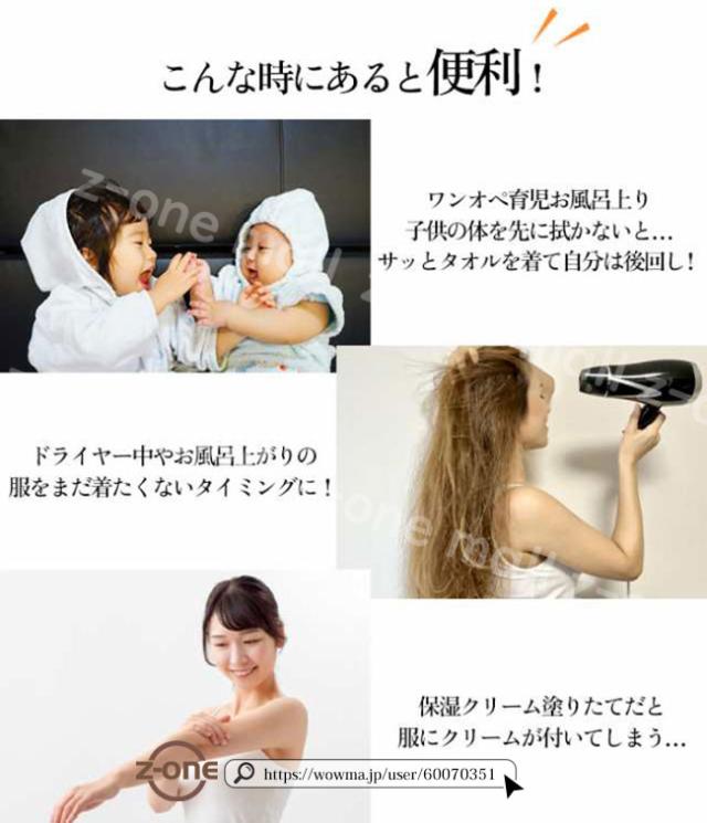 お風呂上りや温泉、プールやジムの着替えの際など、穴に手を通してサッと着ることができるので大活躍♪