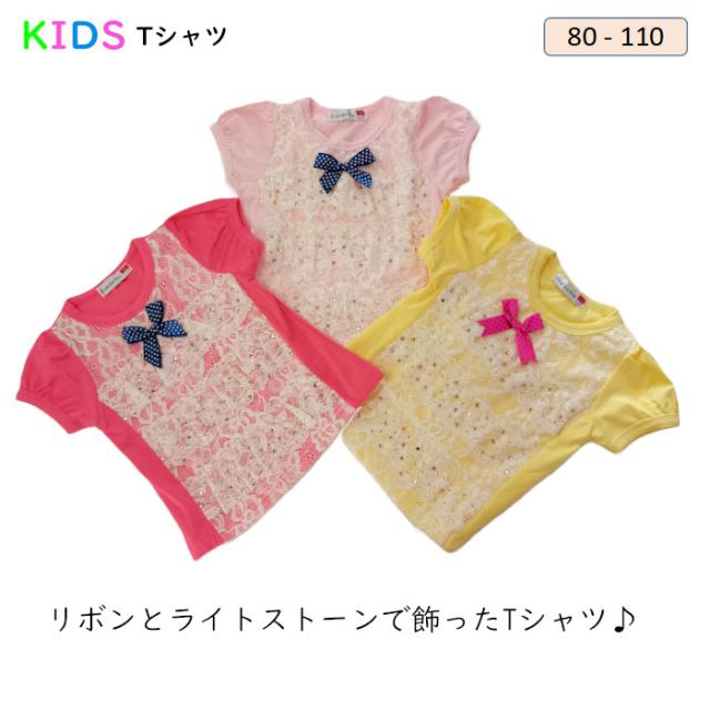 子供 Tシャツ 女の子 半袖 子供Tシャツ 子供服 リボン 半袖 Tシャツ おしゃれ 可愛い子供服