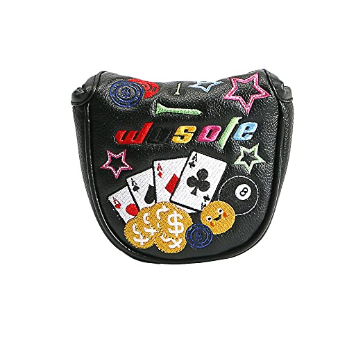 ゴルフ ヘッドカバー パターカバー 磁石開閉 マレット用 オデッセイ2ボール テーラーメイド スパイダーパターに対応 トランプ 刺繍