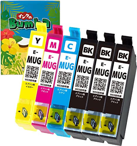 【Bumba】MUG-4CL エプソン 対応 互換インクカートリッジ 4色セット+BK2 (6本セット) MUG マグカップ インク EW-452A EW-052A 残量表示 個別包装 QR説明書