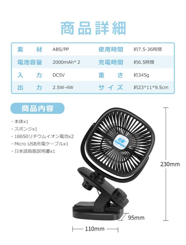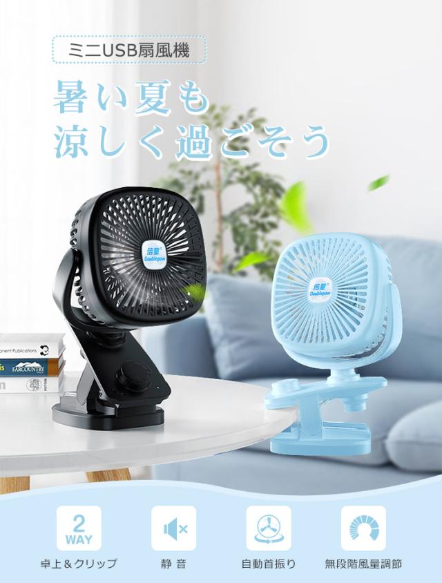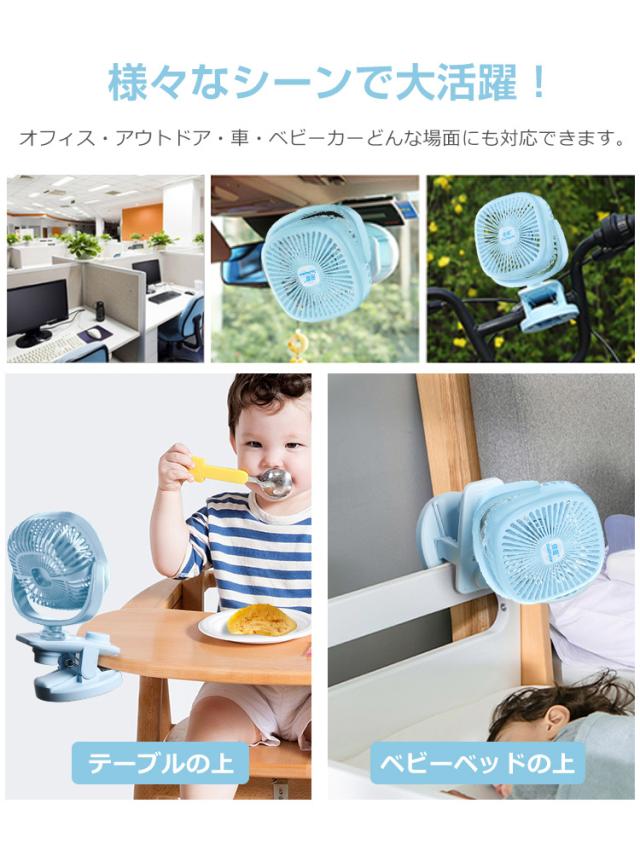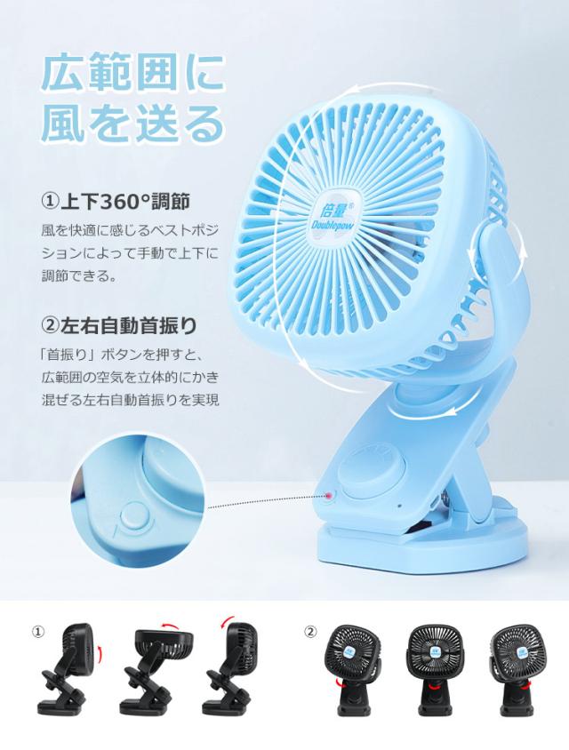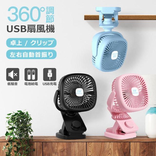 クリップ USB扇風機 自動首振り 強力 ベビーカー 扇風機 ハンディファン 静音 小型 卓上扇風機 ペットカート 携帯扇風機 車載 車用 扇風機 USB充電