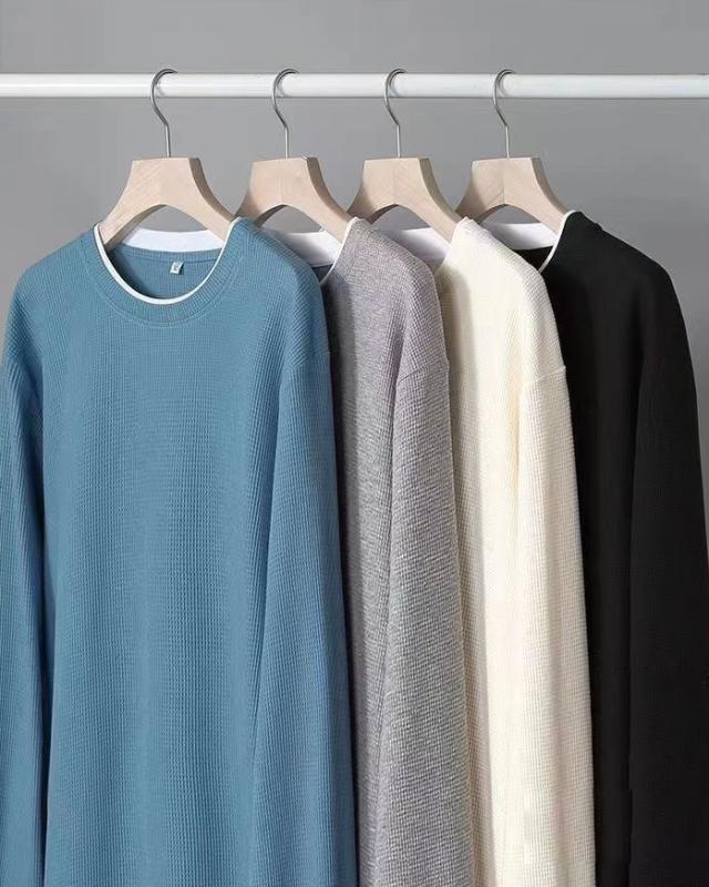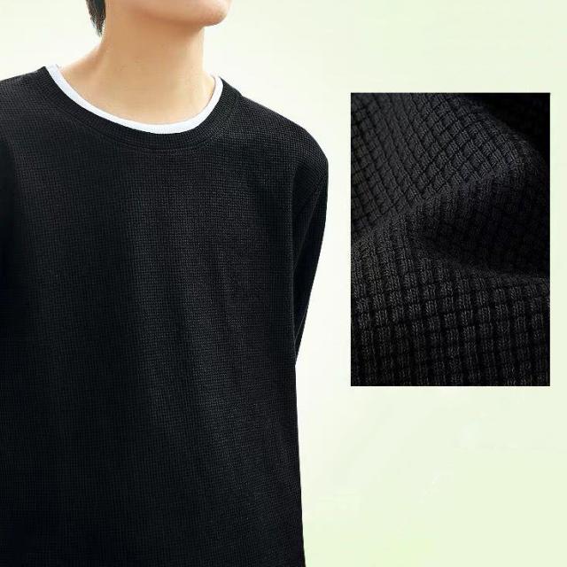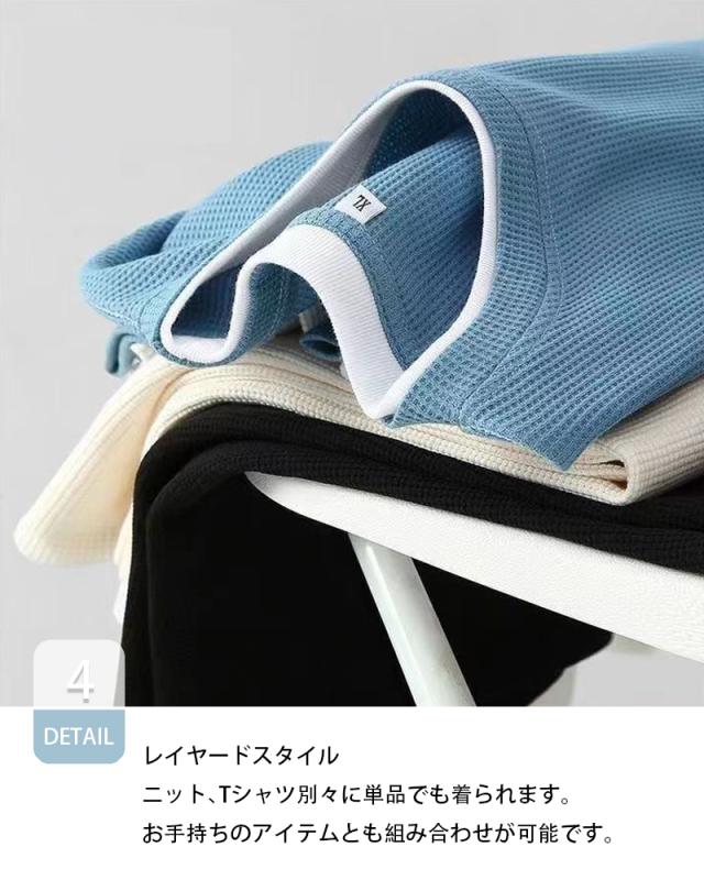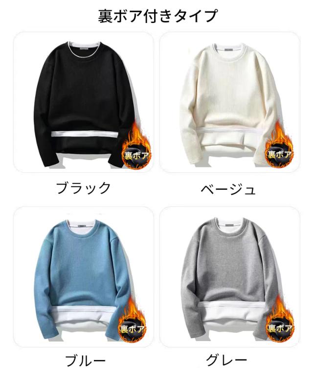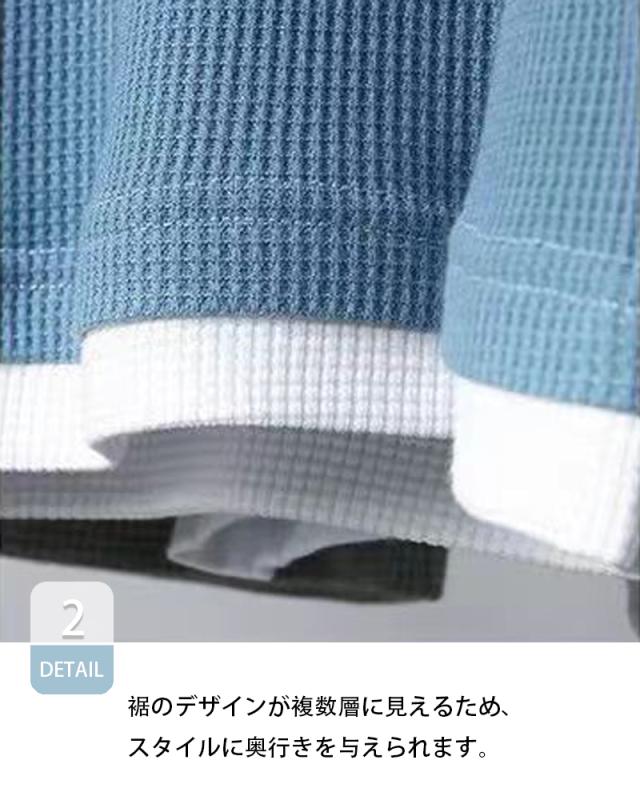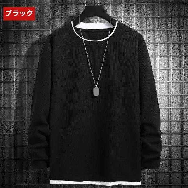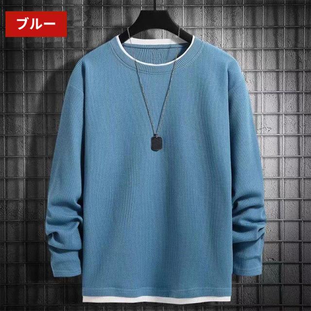 Tシャツ長袖カットソー長袖ワッフルェイクレイヤード裏起毛裏ボア暖かいワッフルサーマル2タイプトップスインナー Uネック クルーネックトップス男女兼用
