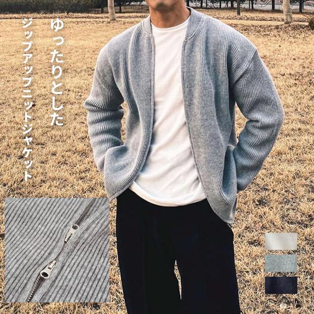 ニットカーディガンニットアウターニットカーディガンニットジャケットセーターダブルジップアウター ゆったりメンズニットアウター ジップアップブルゾン