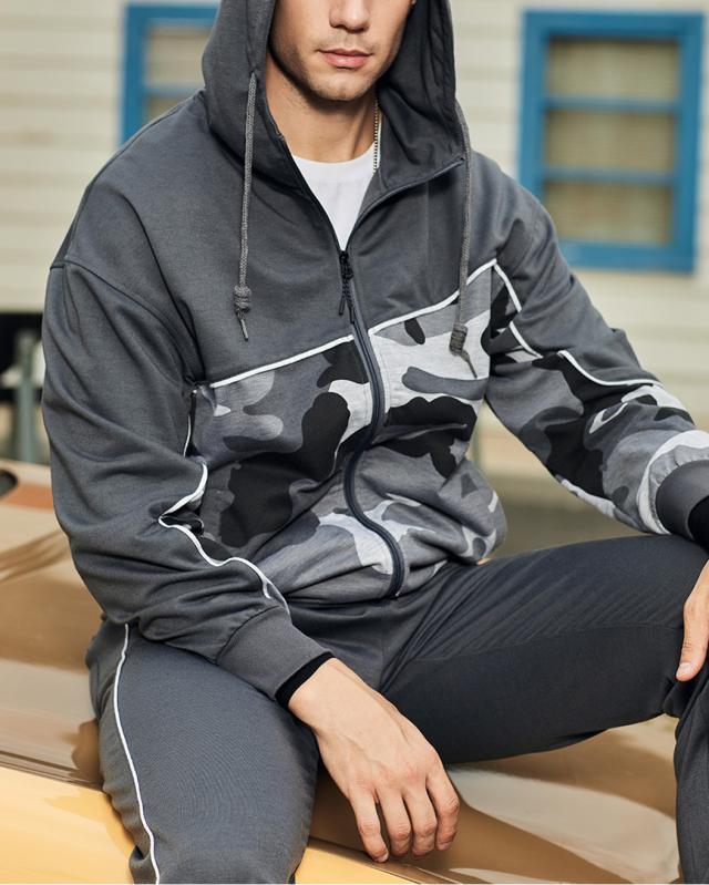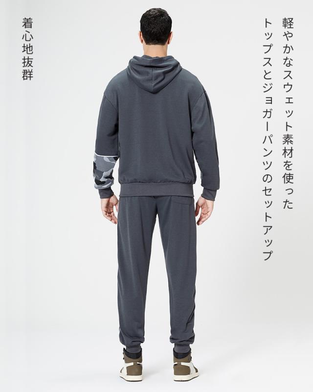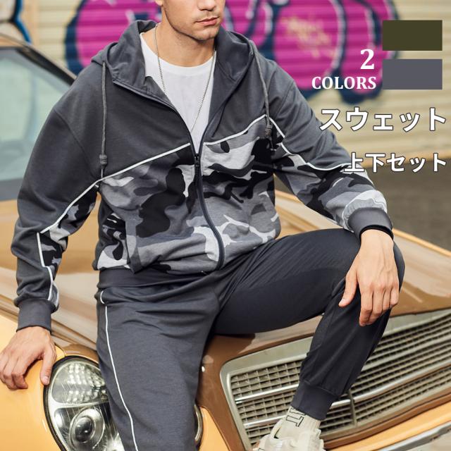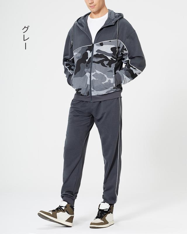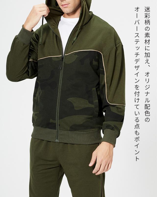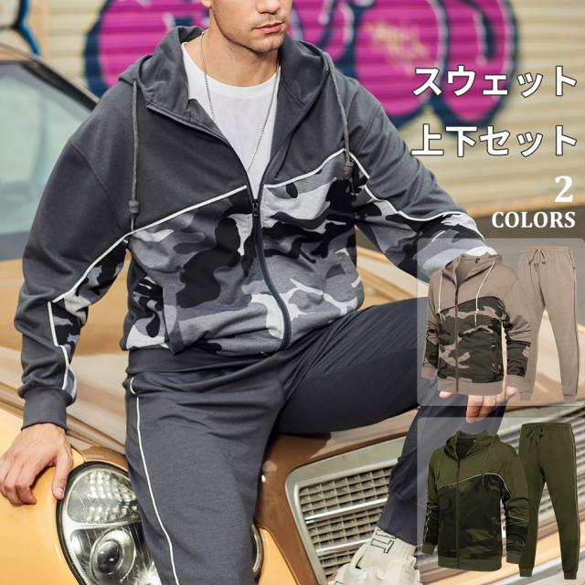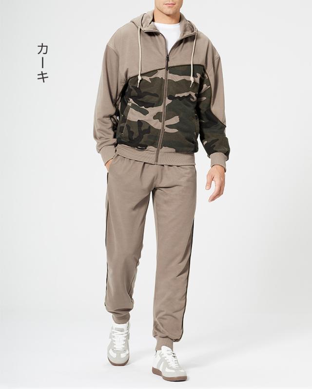 セットアップ上下セットスウェットカモフラ柄セットアップ迷彩パーカージップトレーナースウェットパンツイージーパンツスポーツウェア長袖ルームウェア 部屋着