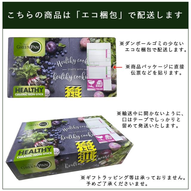 | グリーンパン使いこなしのコツ 最適な火加減でご使用の上、正しいお手入れをしていただくことで、性能を十分に引き出し、長く・快適にご愛用いただくことができます。 はじめてご使用になる前に 〇梱包資材やラベルなどは全て取り除いてください。 使い方のポイント