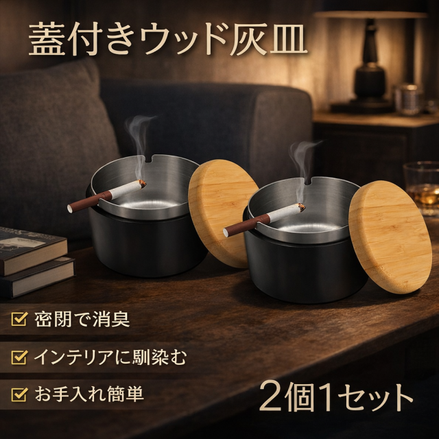 灰皿 おしゃれ 木製 ふた付き灰皿 大容量 蓋付き スタイリッシュ インテリア ふた付き 車 携帯 ステンレス 匂い しっかり 遮断 卓上 蓋付き灰皿 スタンド 屋外 車用 ガラス 陶器 菅 喫煙具 喫煙パイプ 喫煙室 喫煙ブース 喫煙グッズ 屋外用 空気清浄機 屋内用 2個1セット