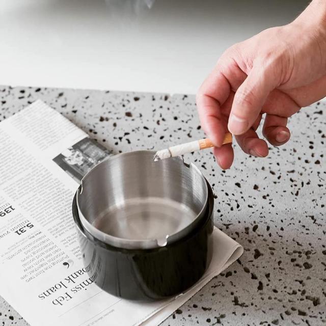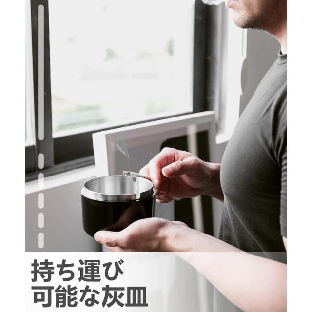 ・灰皿の内部はステンレス製で、厚みと重量があり、堅牢で耐水性と耐火性が強く長い時間使用できます。また、丸洗いも可能です。外側はPP製で、セラミックのようなツヤ感があり、軽量で弾力性があり、割れにくく、断熱性があります。