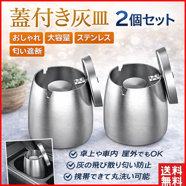 灰皿 おしゃれ 蓋付き 大容量 スタイリッシュ インテリア ふた付き 車 携帯 ステンレス 匂い しっかり 遮断 卓上 ふた付き灰皿 蓋つき灰皿 車内灰皿 スタンド 屋外 車用 ガラス 陶器 菅 喫煙具 喫煙パイプ 喫煙室 喫煙ブース 喫煙グッズ 屋外用 空気清浄機 屋内用 2個セット