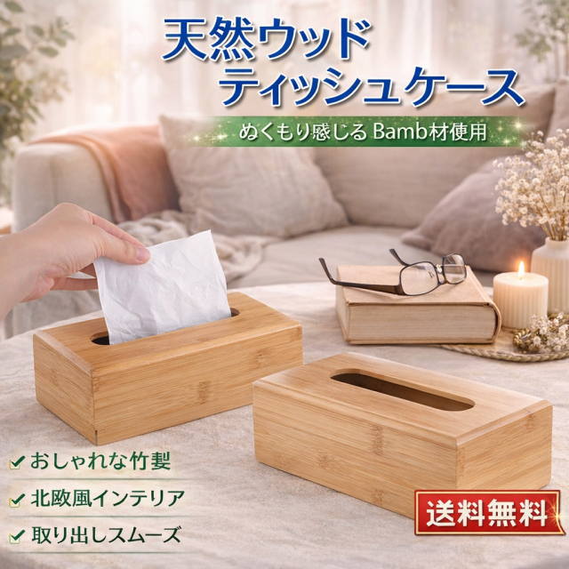 ・素材の良さを生かした、優しい風合いのシンプルでおしゃれな木製ティッシュボックスです。サイズは約長さ26.5×幅14×高さ9.5cmで、市販の一般的なティッシュ箱が収まります。