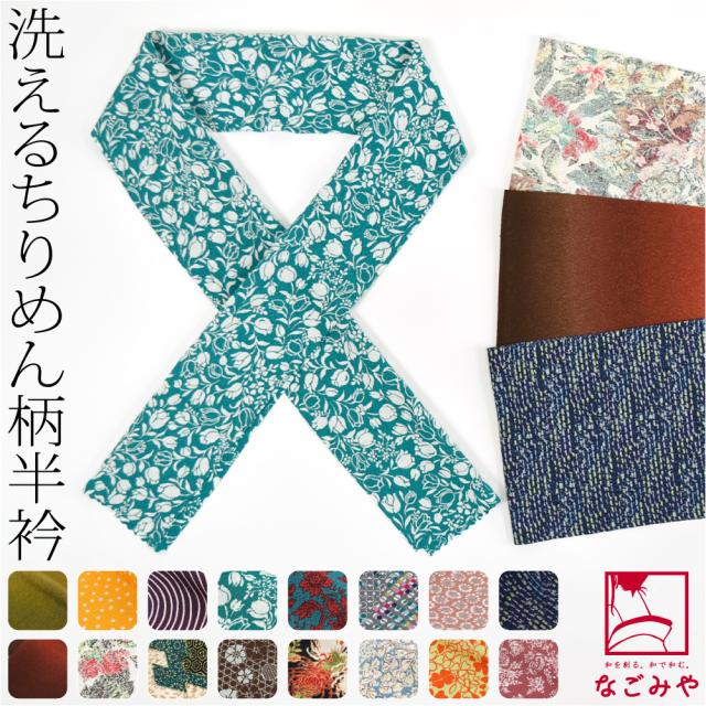 洗える 半衿 柄 半襟 袷用 日本製 WASOUL ちりめん 友禅 半衿 小紋 紬用 ポリエステル おしゃれ 大人 レディース 女性 10023778