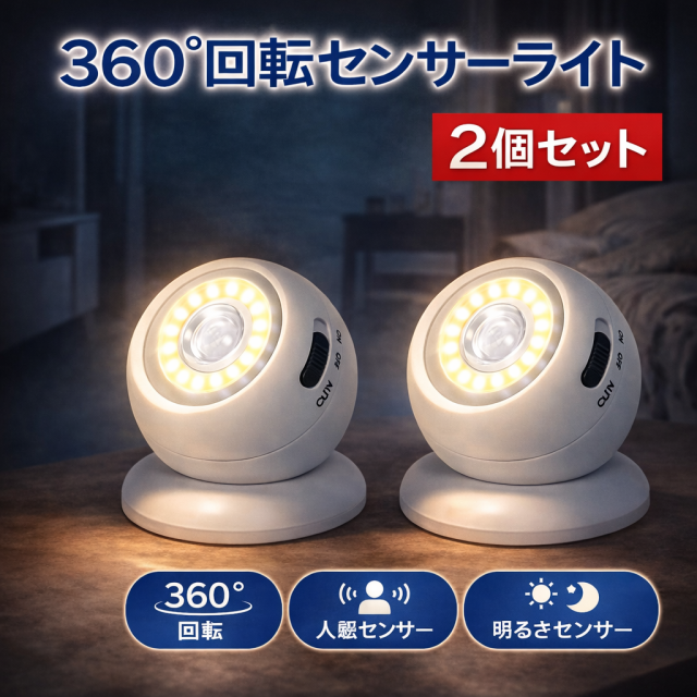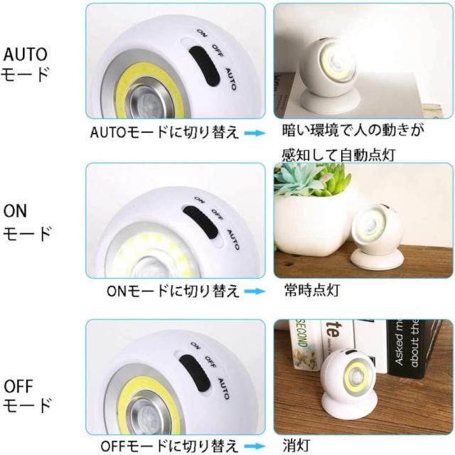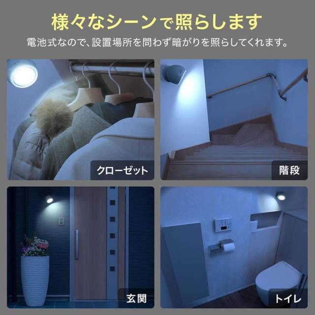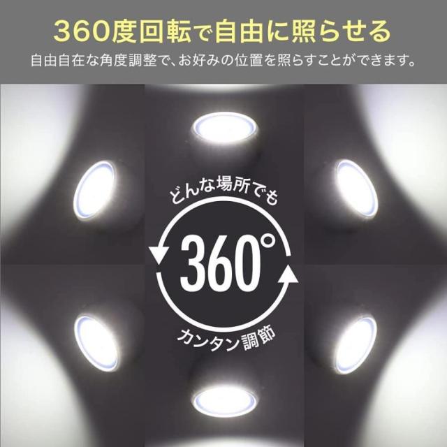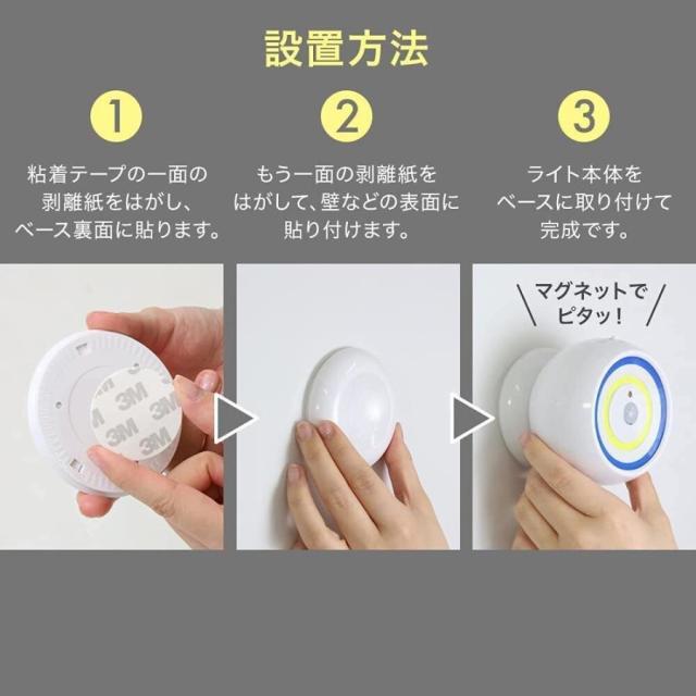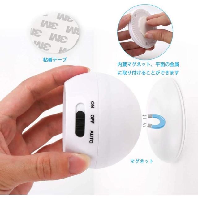 ・超強力な3M両面テープと内蔵のマグネットを使用して、平面であればライトをどこにでも貼り付けることができます。360度回転可能で、お好みの位置を照らすことができます。
