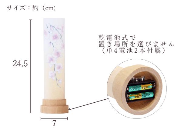 【コードタイプ】 コードレス(単4電池 2本付属) 【サイズ 約(cm)】 盆提灯:高さ24.5 径7 |
