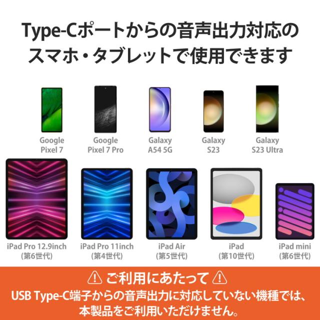 ■対応機種:USB Type-C(TM)ポートからの音声出力に対応したスマートフォンおよびタブレット(端末からの出力は、アナログ・デジタル両対応)