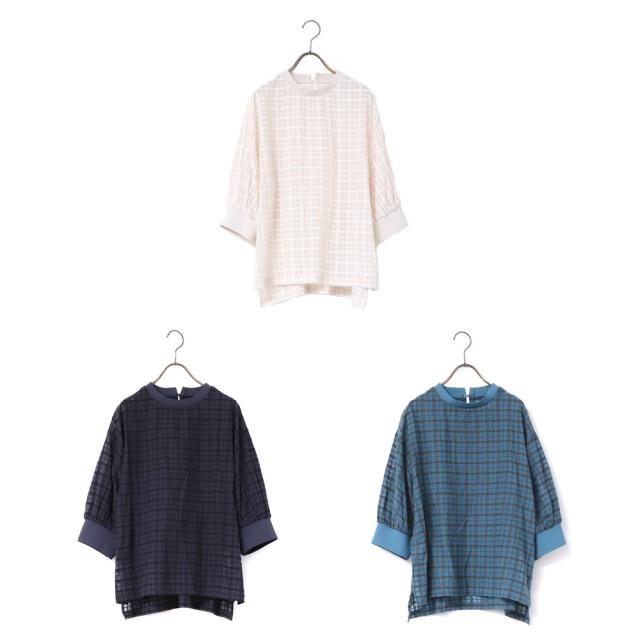 【30%OFF 送料無料 レディース 大人】 Hunch(ハンチ)シアーサッカーチェック ブラウス