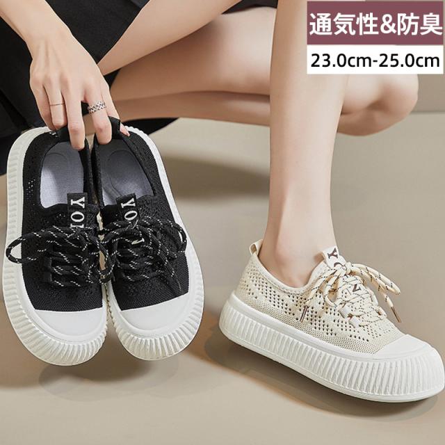 スニーカー レディース メッシュ 厚底 ローカット ぺたんこ 幅広 キャンバス 滑り止め 歩きやすい ランニング 高校生 コンフォ