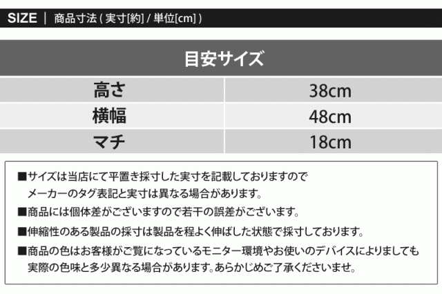 | 素材 | ポリエステル ※製造工程の過程による、小さなほつれ、微小な縫製のずれなどの返品対応は致しかねます。ご了承ください。 |