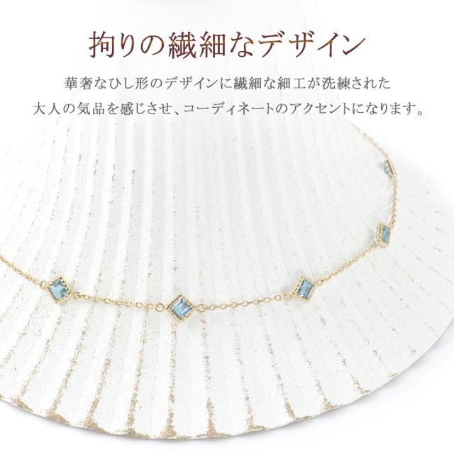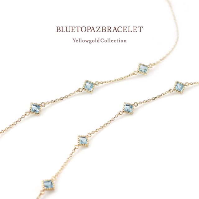 ブルートパーズ ブレスレット ジュエリー 10金 イエローゴールド 華奢 シンプル 10K K10 アクセサリー ブルー トパーズ 18cm チェーンのブレスレット かわいい おしゃれ プレゼント 誕生日 ギフト ひし型 ひし形 菱形 菱型 彼女 11月 誕生石 本物 天然石 ホワイトデー お返し