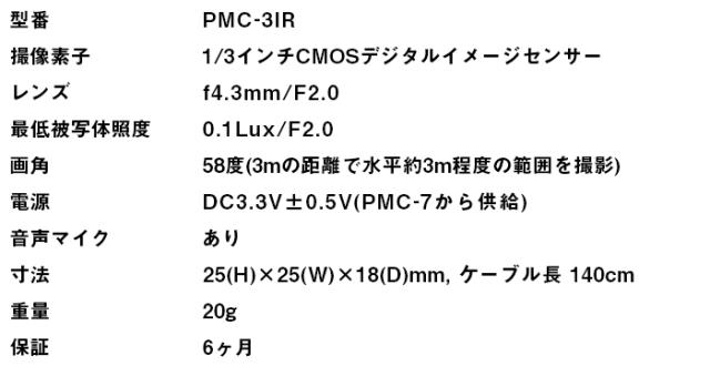 PMC-3IR | PMC-7専用フルHDカメラ【赤外線撮影対応】【高感度】【スパイカメラ】【小型カメラ】【サンメカトロニクス】
