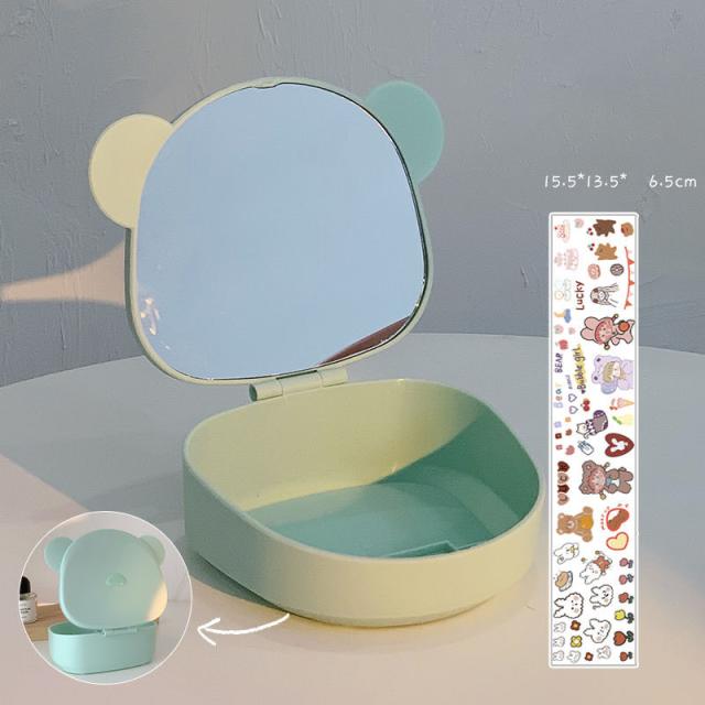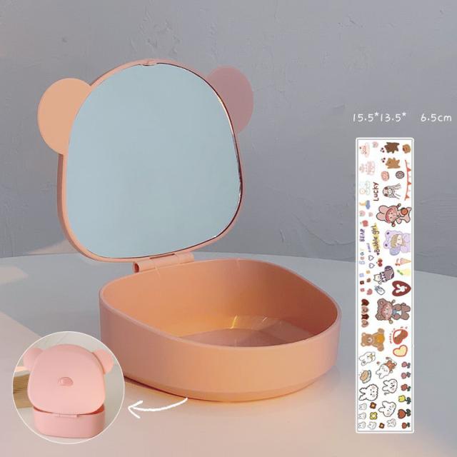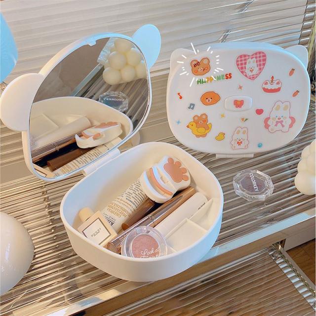 送料無料 メイクボックス ミラー 鏡付き コスメケース 卓上ミラー スタンドミラー 化粧鏡 コスメボックス メイクケース リップ収納 ネイル収納