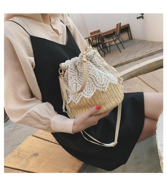 かごバッグ レディース ショルダーバッグ 巾着型 レース 手提げ 斜めがけ 祭り 手提げバッグ ストローバッグ ハンドバッグ ゆかた