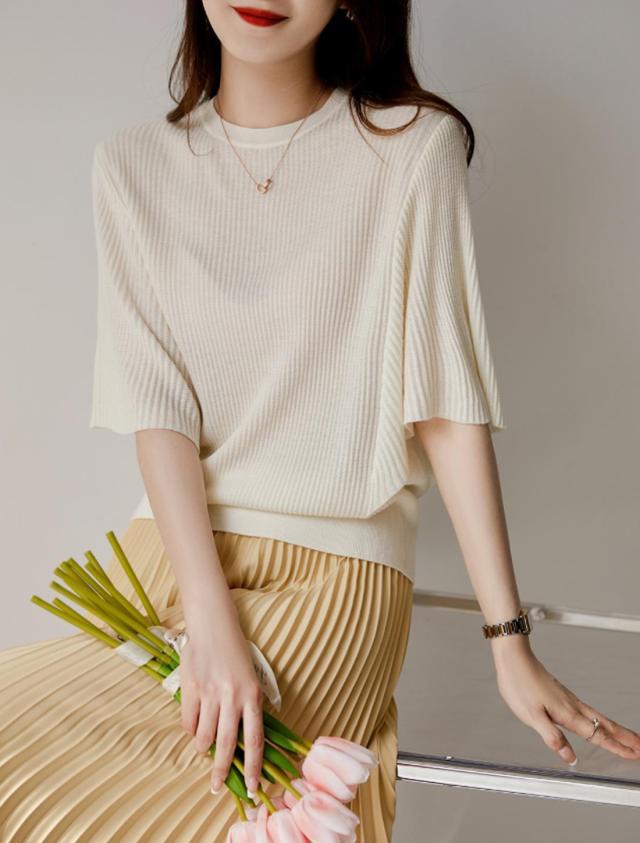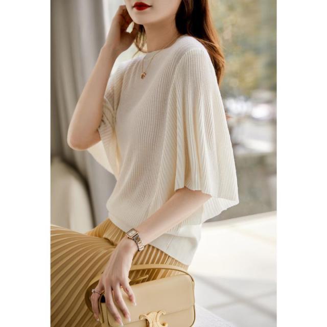 送料無料 サマーニット フレアスリーブ レディース ニット 春 夏 袖フレア サマーニット プルオーバー レディース トップス ニット シアーニット ブラック ホワイト