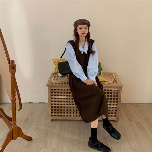 ワンピース シャツ レディース セット バックワンピース ロングワンピ ノースリーブワンピース 体型カバー 春 夏 秋 おしゃれ 韓国 通勤 通学