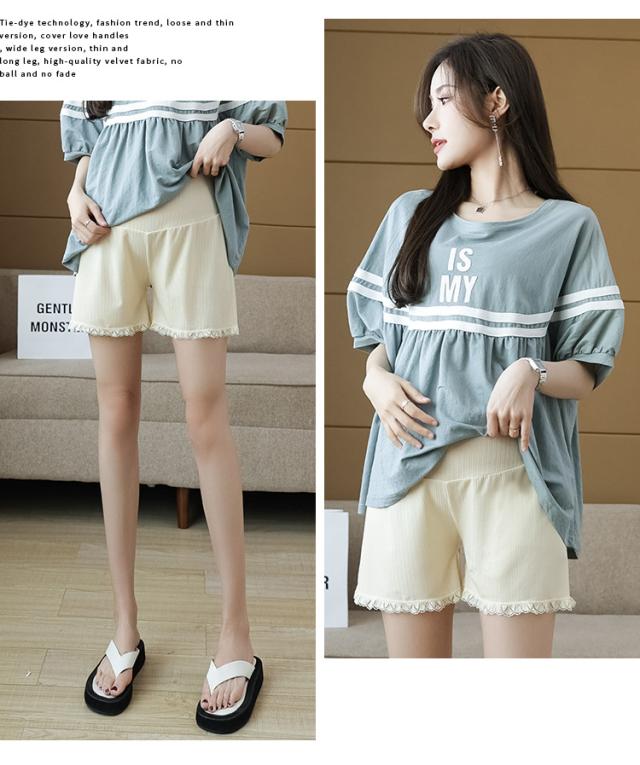 マタニティウェア ペチコート ペチパンツ スパッツ ショートパンツ 接触冷感 アンダーショーツ 裾レース レディース 透け防止 ママ 妊娠服 無地 産前産後