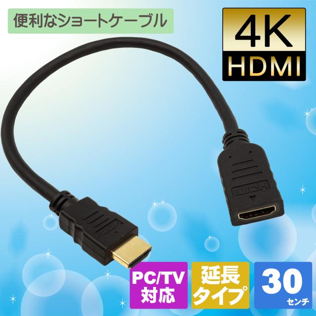 4K対応 HDMI延長ケーブル PS5/Switch動作確認済 テレビ 液晶に最適 (オス) - (メス) 約30cm SHDMIE-03M エスエスエーサービス