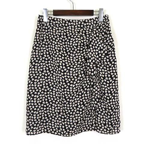 【中古】セーヌドゥー SCENE DEUX 東京スタイル スカート フレア ハート柄 ドレープ フリル とろみ 落ち感 M 9 黒 白