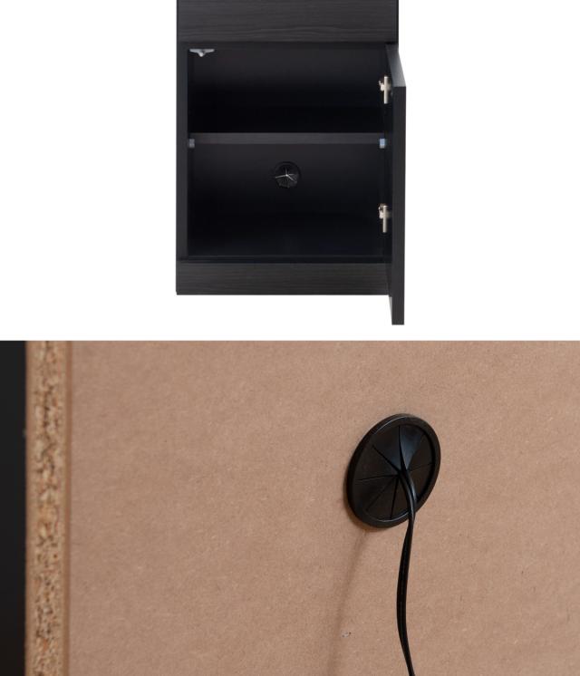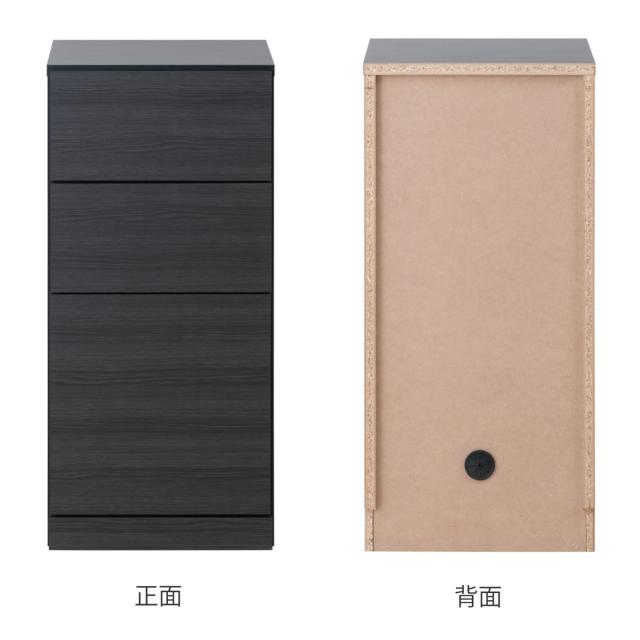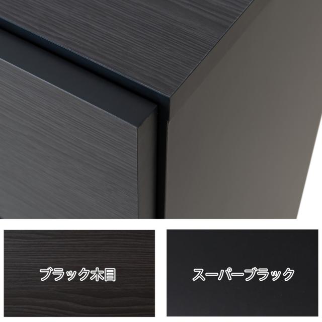 側板や内部には、傷がつきにくい強化紙を使用した木目のないスーパーブラックを使用しております。無機質なスーパーブラックと、木目の入ったブラックの組み合わせがお洒落なデザインです。
