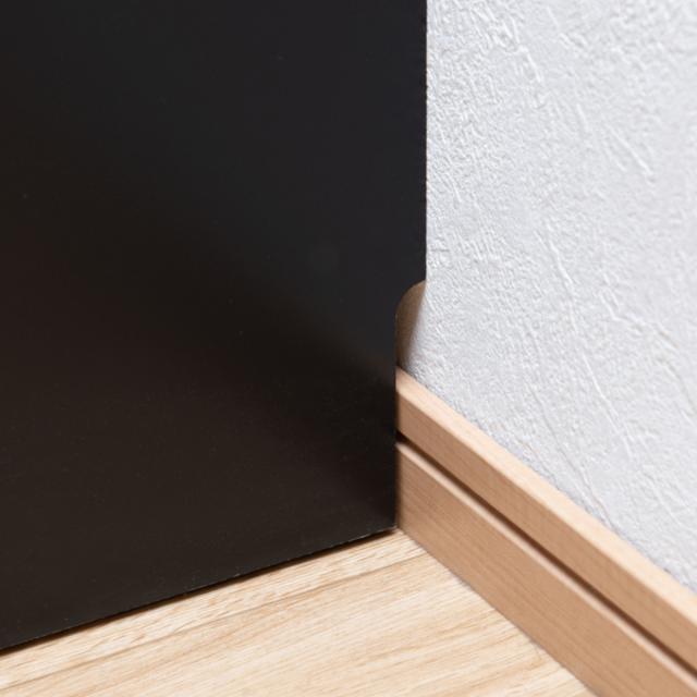 壁にぴったりと設置しても隙間ができないように、背面に巾木よけカットを施しています。