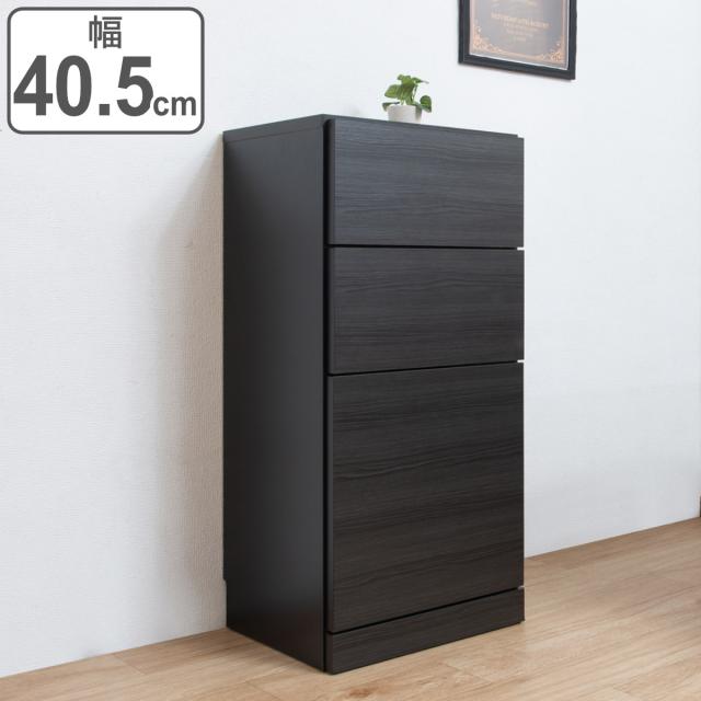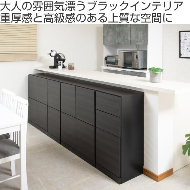 カウンター下収納 薄型キャビネット 引出し扉タイプ 日本製 約幅41cm ( キャビネット 棚 収納 薄型 キッチン カウンター 完成品 ラック キッチン収納 引き出し 窓下 リビング ブラック シンプル )