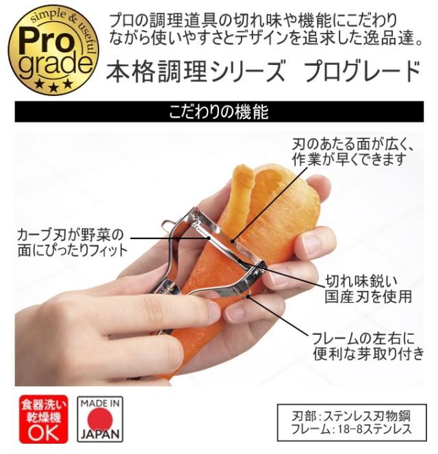 プログレード 快速ピーラー PG-642 日本製 ピーラー カーブ刃 芽取り付き 皮むき 下ごしらえ 調理 調理器具 食洗器対応