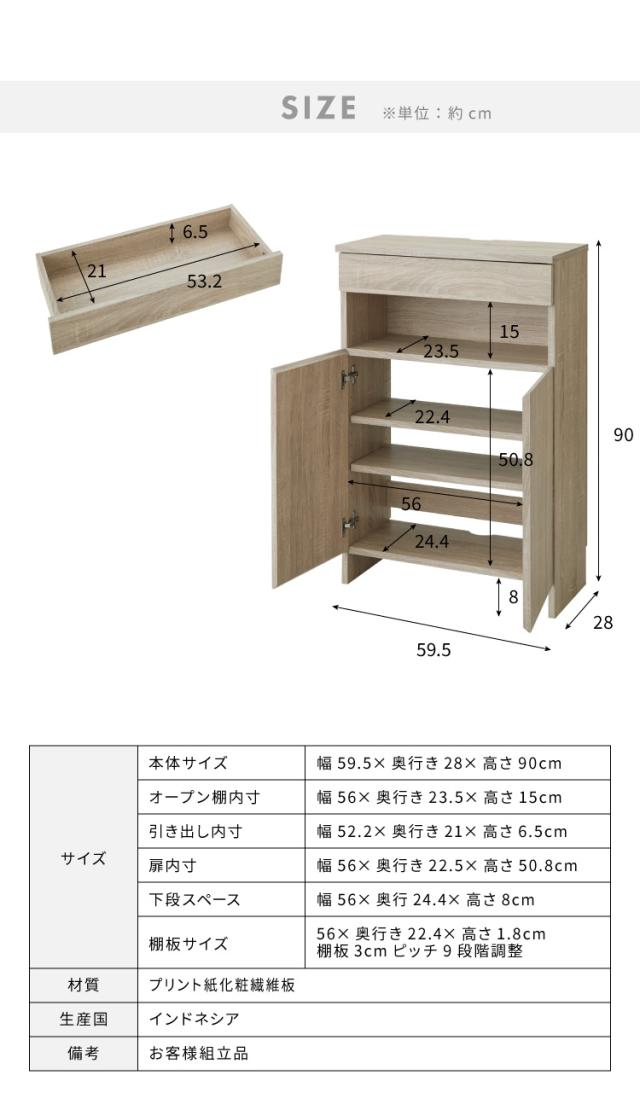 [本体サイズ]幅59.5×奥行き28×高さ90cm