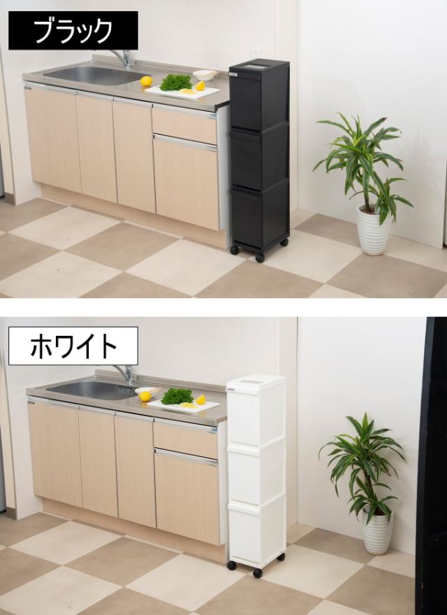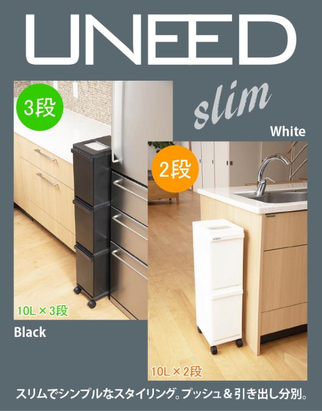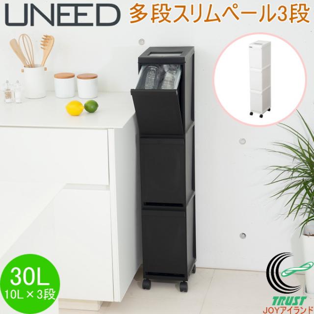 ユニード 多段スリムペール3段 30L 日本製 ゴミ箱 スリム 3段 キャスター付 ブラック ホワイト シンプル キッチン