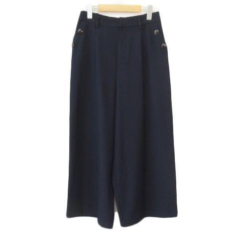 【中古】ドレスキップ DRESKIP ワイドパンツ ハイウエスト タック ストレッチ M 紺 ネイビー レディース