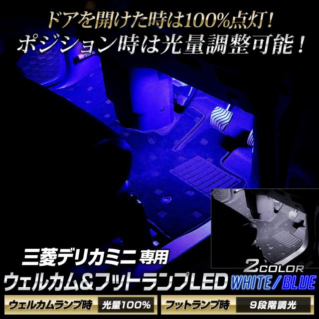 デリカミニ 専用 室内ウェルカムランプ&フットランプ【ブルー/ホワイト】