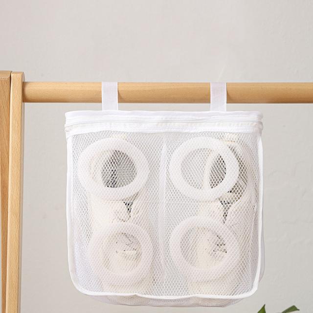 2枚の靴用洗濯ネット、大小の靴サイズ通用。靴ネットの一端にウェビング吊り下げ穴があり、吊るして干す便利です。繰り返し利用可能から、長時間使えます。