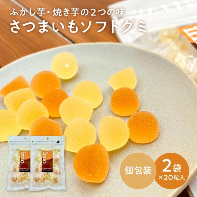 送料無料 ★ さつまいもソフトグミ 2袋 20粒入 グミ 小腹 小分け 個包装 おやつ お菓子 子ども 健康 水あめ 水飴 芋 焼き芋 ふかし芋 自然派 駄菓子 食べきり 食べ切り おやつ グミキャンディひとくち ゼリー やわらかい ギフト おじいちゃん おばあちゃん 手土産