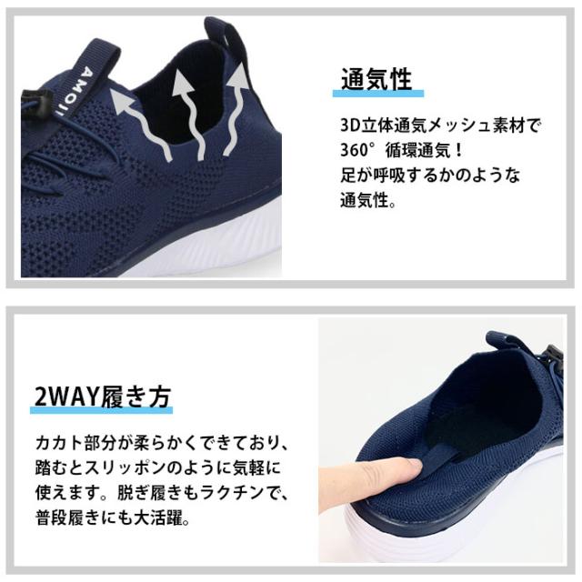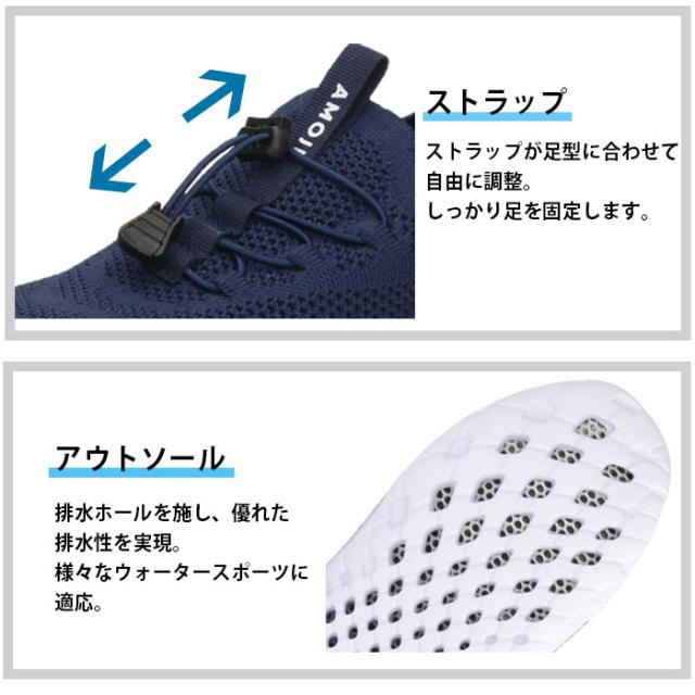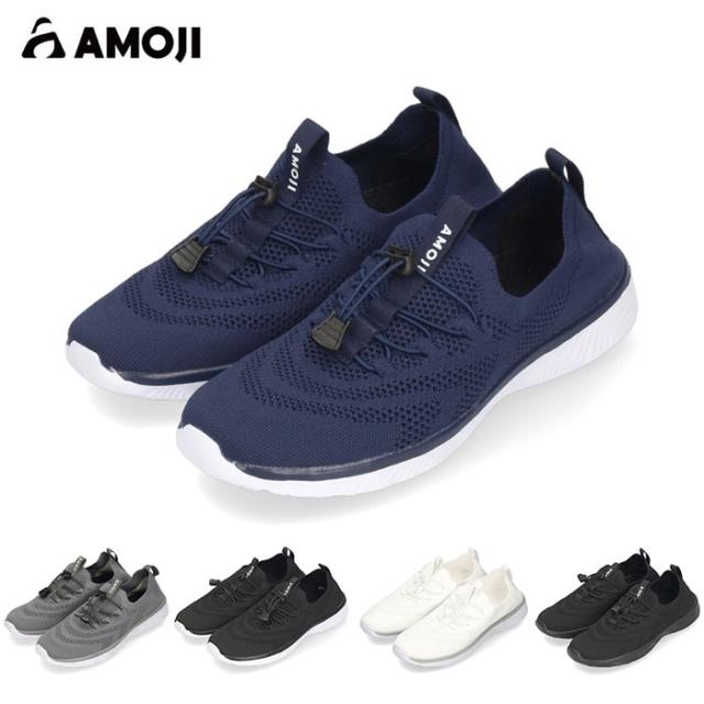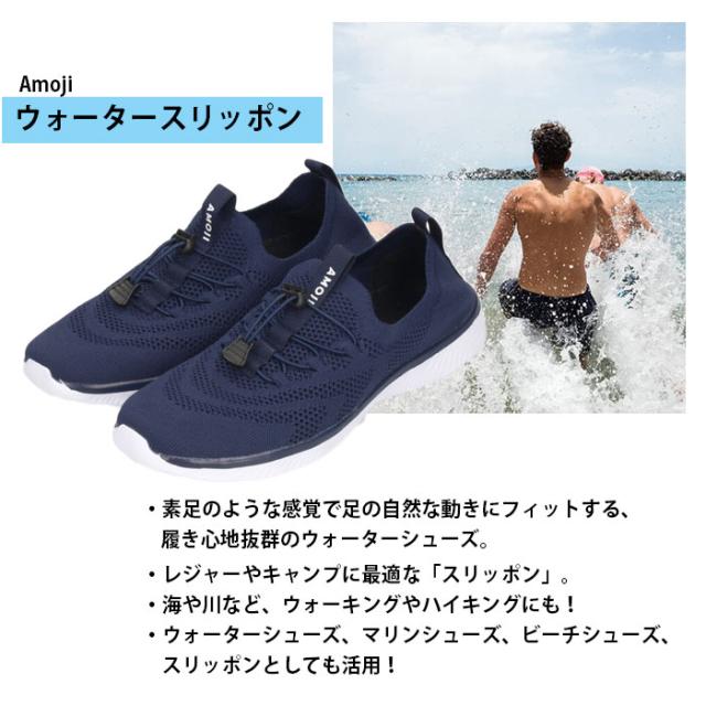 AMOJI アモジ メンズ ウォーターシューズ スリッポン マリンシューズ 水陸両用 排水機能 速乾 軽量 FZ503 ブラック 黒 グレー ネイビー ホワイト