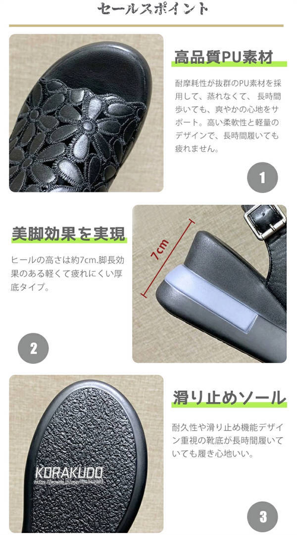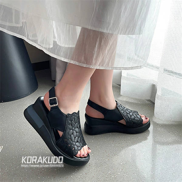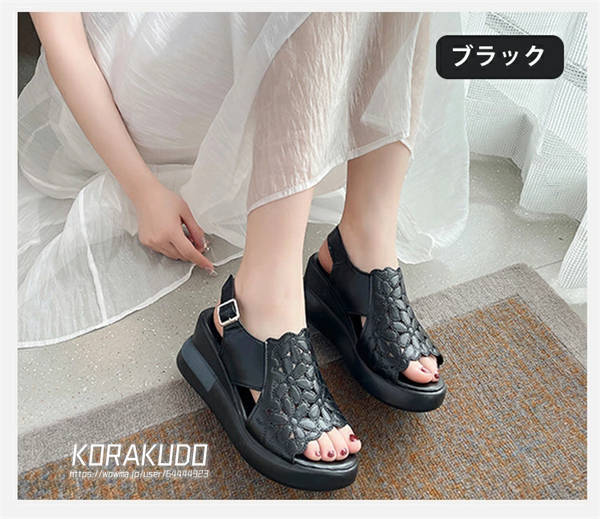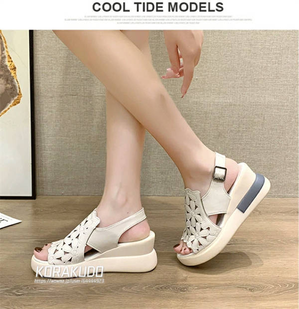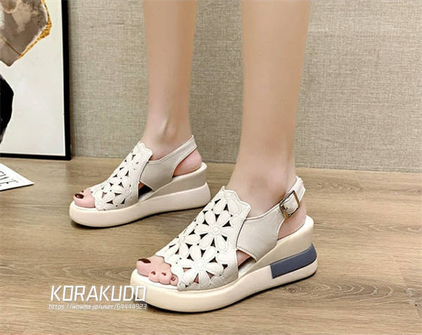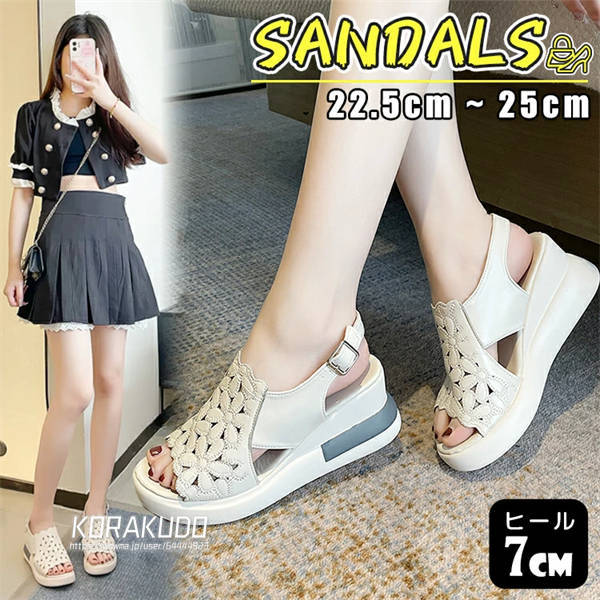 サンダル レディース 歩き やすい 厚底 7cmヒール ウェッジサンダル 美脚 花柄 スポーツサンダル 楽ちん 柔らかい 疲れにくい オープントゥ ウェッジソール 軽量 通気性 ストラップ カジュアル 女性 大人 アウトドア 履きやすい