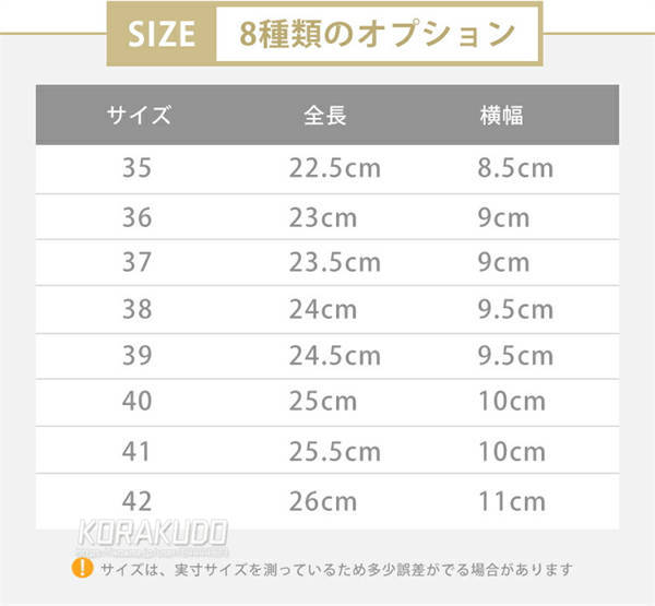 ■サイズ:22.5cm (35) 23cm (36) 23.5cm (37) 24cm (38) 24.5cm (39) 25cm (40) 25.5cm (41) 26cm (42)
