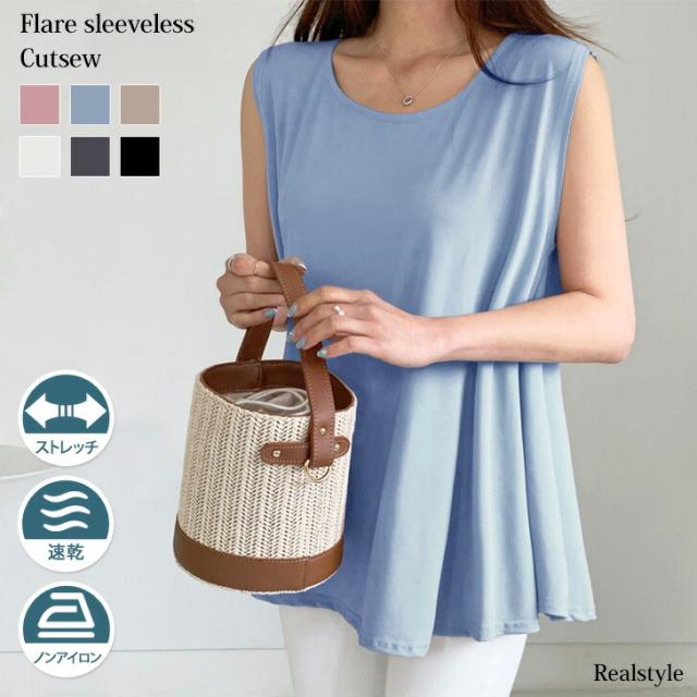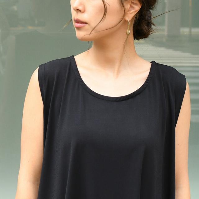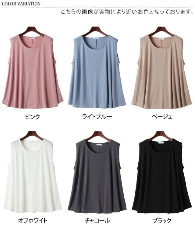 サラてろロング丈フレアノースリーブカットソー レディース トップス きれいめ おしゃれ 夏 黒 タンクトップ 袖なし ゆったり 大きめ シンプル 無地 カジュアル かわいい ふんわり チュニック 体型カバー 白