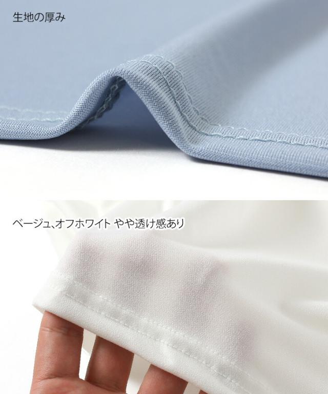 | 生地感 | 伸縮性抜群でとろみ感のあるやや薄手の生地 【伸縮性】あり 【透け感】なし(ベージュ、オフホワイトややあり) 【裏地】なし |