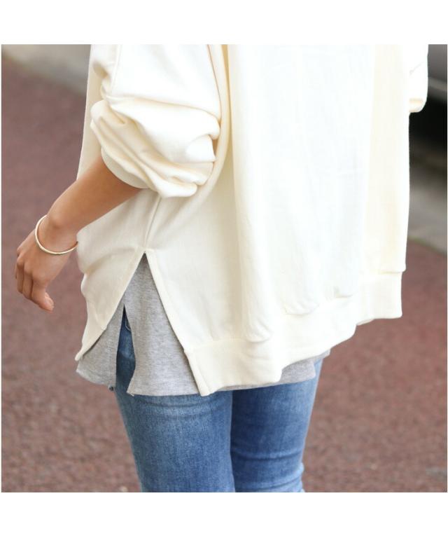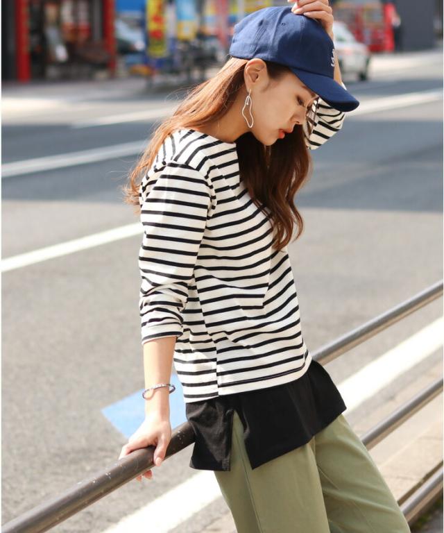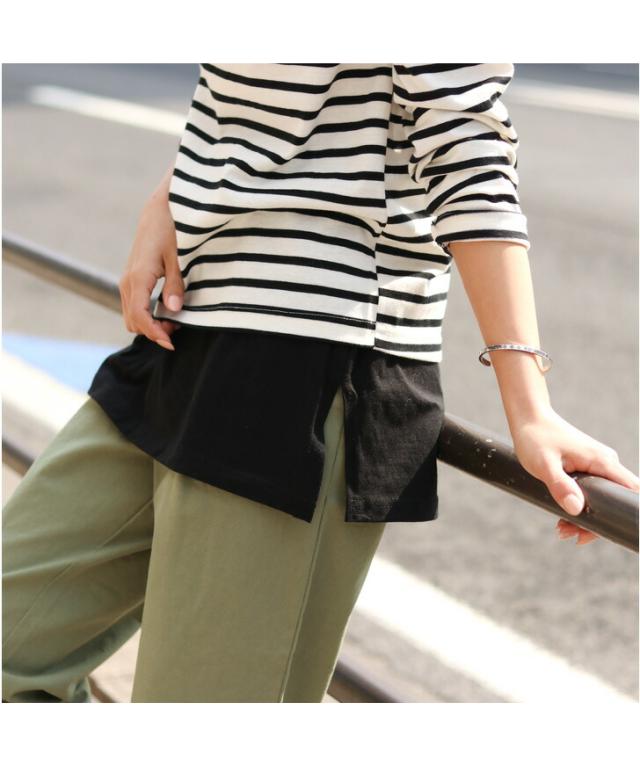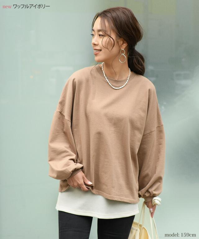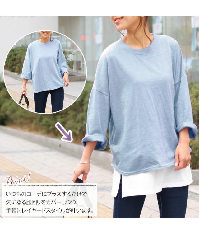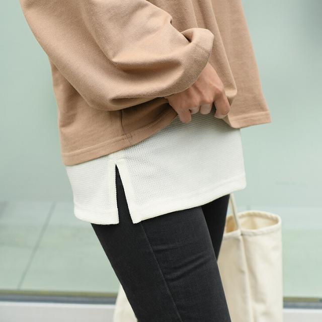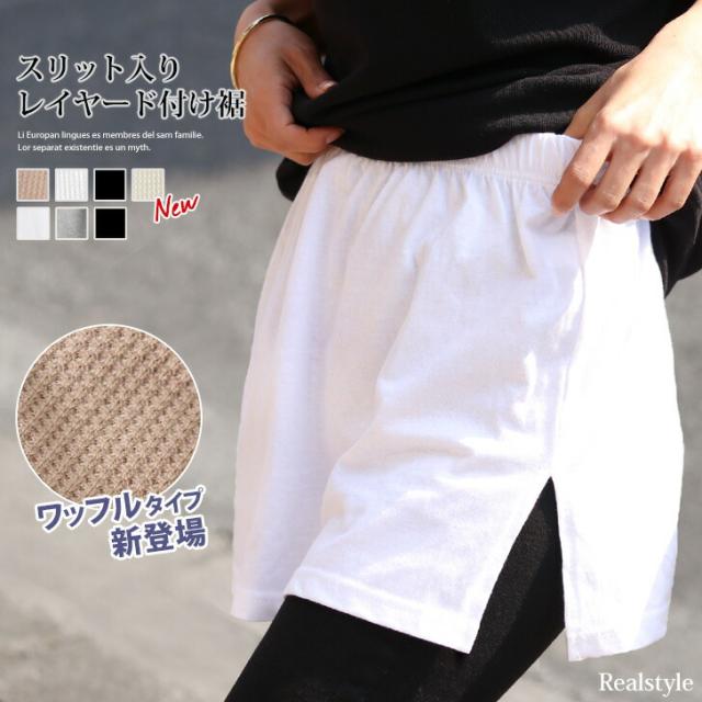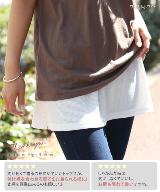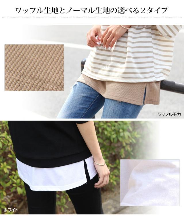 サイドスリット入り 付け裾 つけ裾 着け裾 レイヤード インナー 重ね着風 Tシャツ レイヤードカットソー レディース トップス 無地 裾フレア ワッフル 裾フリル つけすそ ウエストゴム ミニスカート型 スリットレイヤード インナー スソダシ 大きめ