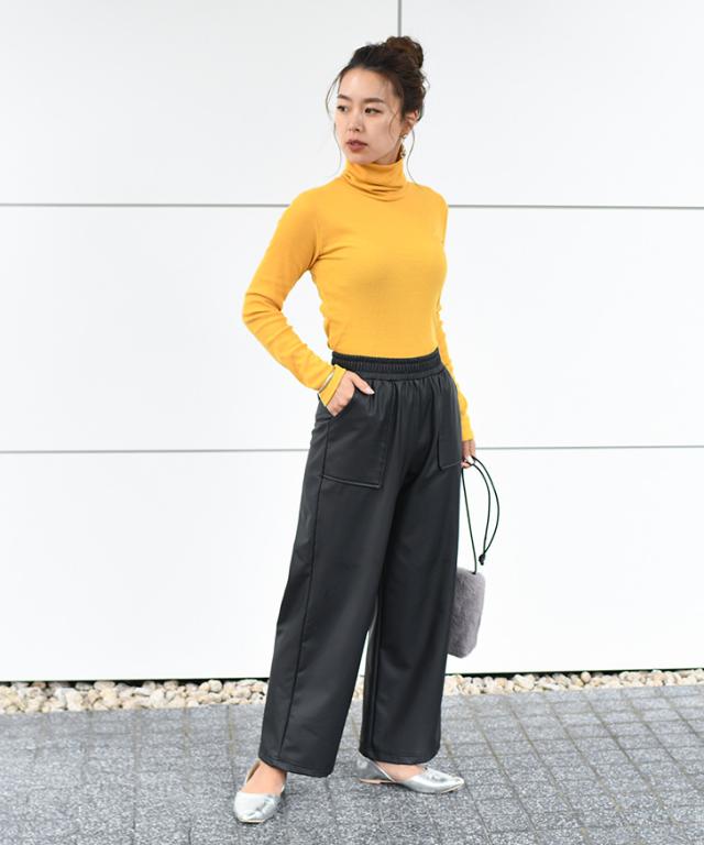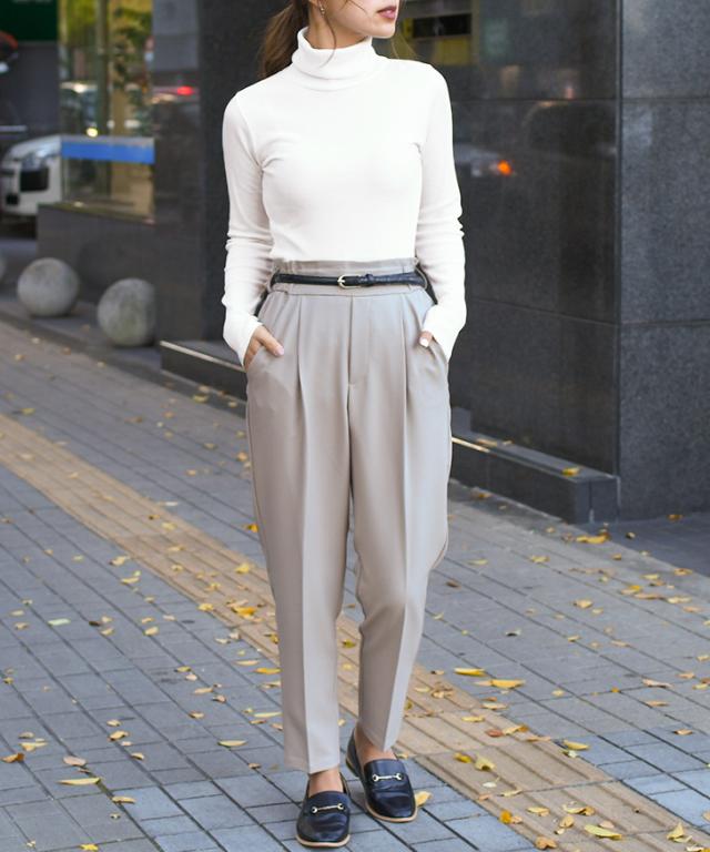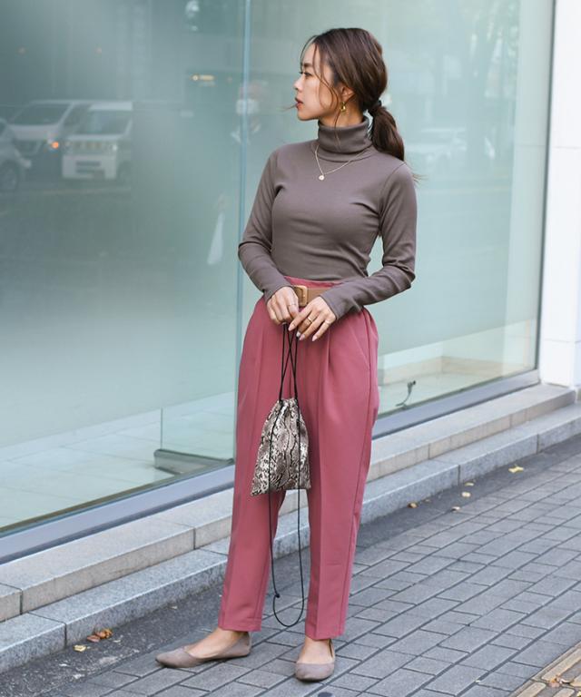 ●着回しやすいベーシックなタートルネックカットソー