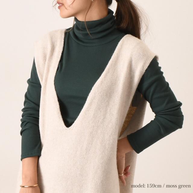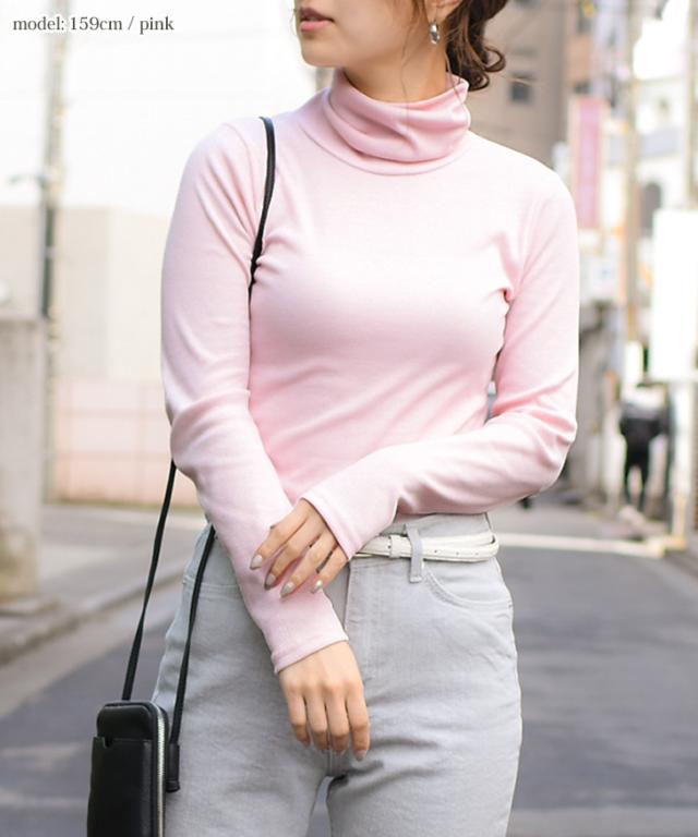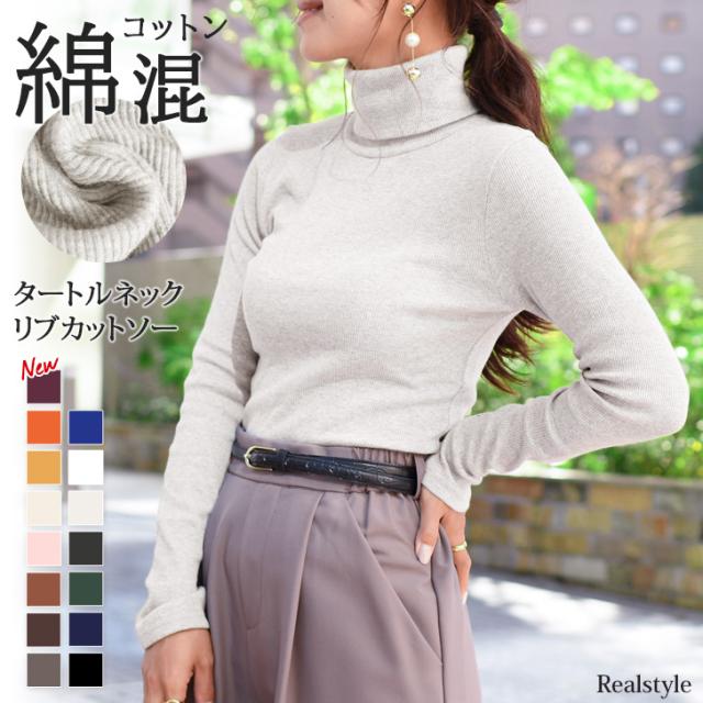 リブニット トップス タートルネック ハイネック レディース 長袖 コットン シンプル リブ カットソー レディース 綿混 コットン混 インナー ニットソー 無地 黒 白 緑 春 ウォッシャブルニット 洗えるニット おうちで洗える 家で洗える
