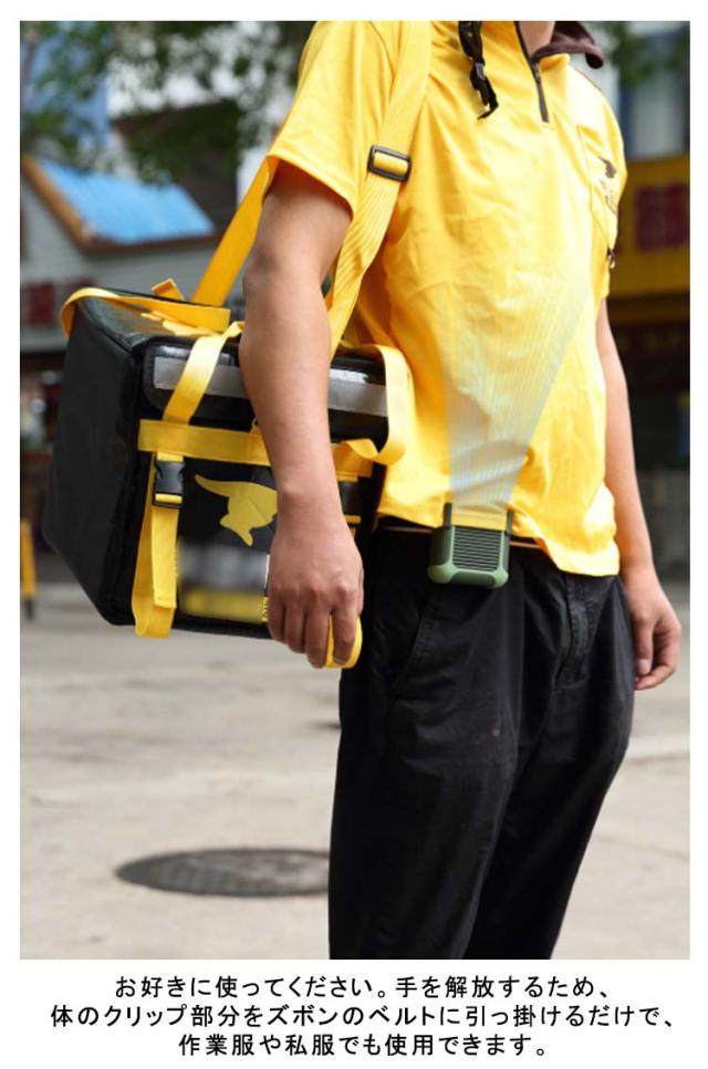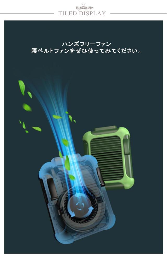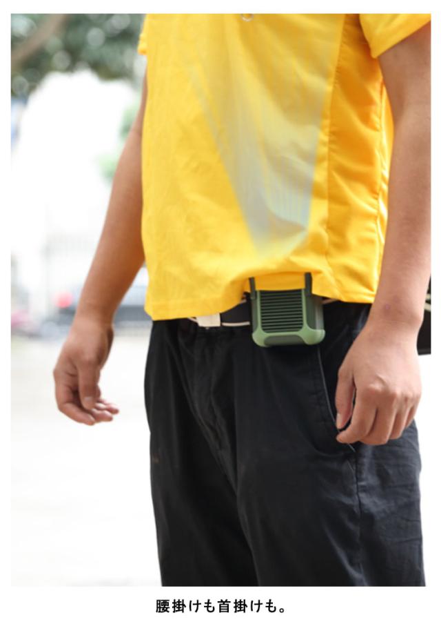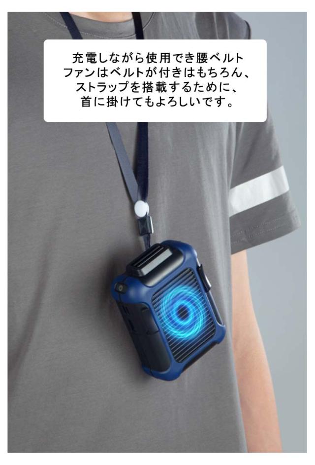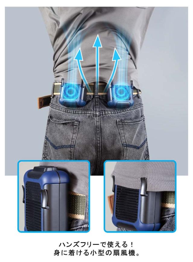 | 4way使用大満足!腰掛け&首掛け&卓上&。ハンズフリーファン 腰ベルトファンをぜひ使ってみてください。 ハンズフリーで使える! 身に着ける小型の扇風機。 ボタンひとつの簡単操作でいつでも調整することができます 小さくてもパワフルな風をぜひ体感してください! 腰掛けも首掛けも。 充電しながら使用でき腰ベルトファンはベルトが付きはもちろん、ストラップを搭載するために、首に掛けてもよろしいです。 お好きに使ってください。手を解放するため、体のクリップ部分をズボンのベルトに引っ掛けるだけで、作業服や私服でも使用できます。 | |